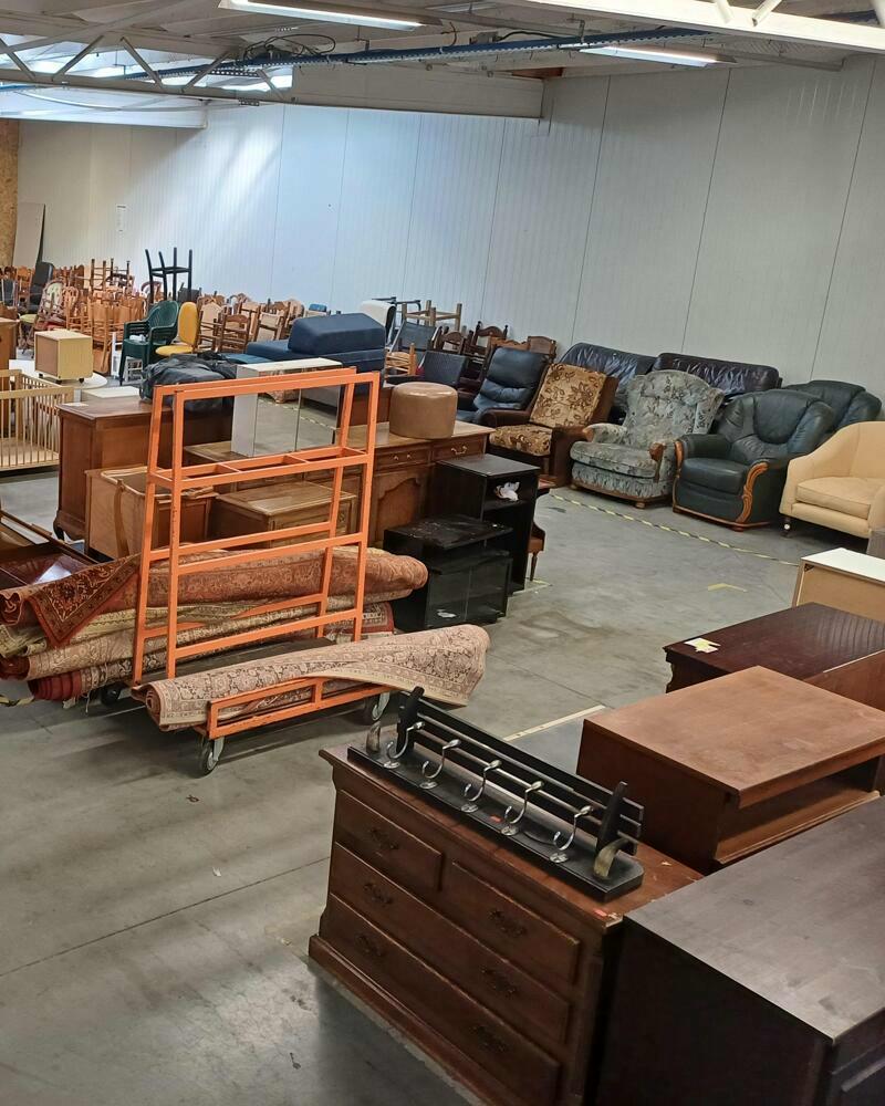 Tweewekelijks op zaterdag verkopen we er ook meubelen die in onze winkels geen nieuwe eigenaar vonden. Zetels, stoelen, (salon)tafels, kastjes, bedden, tapijten, matrassen... allemaal aan lage prijzen.