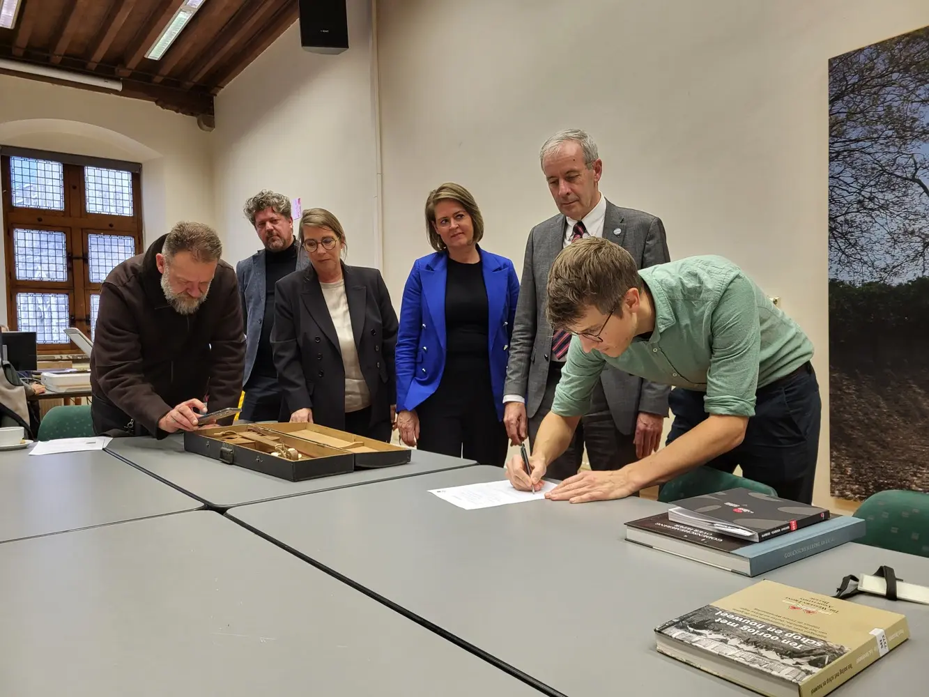Vandaag krijgt deze bijzondere vondst een jaar lang een prominente plek in het In Flanders Fields Museum, in de nieuwe schenkingenkast tussen het kenniscentrum en het museumcafé. Louis De Backer krijgt er opnieuw een gezicht én een stem. Zijn viool en zijn verhaal worden opgenomen in het museumjaarboek en maken deel uit van publiekswerking rond muziek tijdens de oorlog.