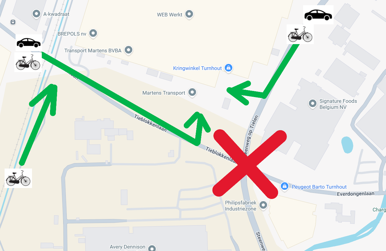 Via Tieblokkenlaan: ✔️ bereikbaar