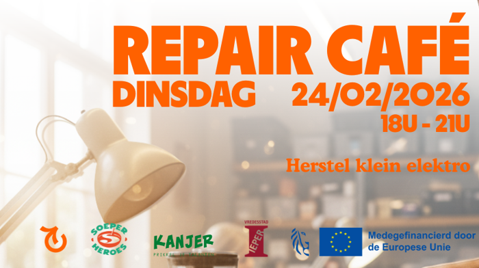Dinsdag 24 februari organiseren we samen met Ieper, Kanjer en Soeperheroes een repair café voor klein elektro. Vanaf 18u ben je welkom in de gezellige bar van Soeperheroes, Aurisgebouw Ter Waarde 1 8900 Ieper.